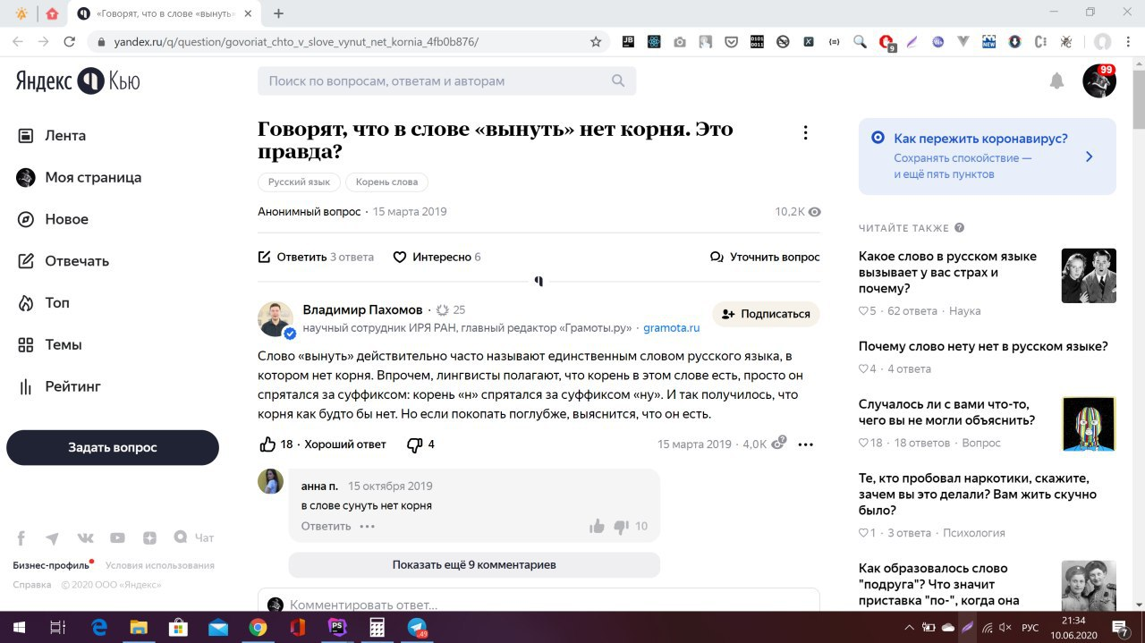 Где же корень? Началось наше расследование с портала Яндекс.Кью, где научный сотрудник ИРЯ РАН, главный редактор «Грамоты.ру» Владимир Пахомов подсказал, где найти потерявшуюся морфему. Оказывается, корень н прячется за суффиксом ну.