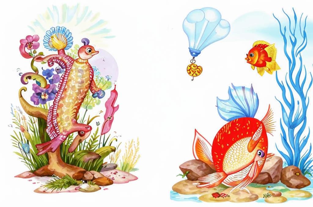 - Слова "рыбы", "моллюски", "ракушки" создают образ простоты и натурализма.