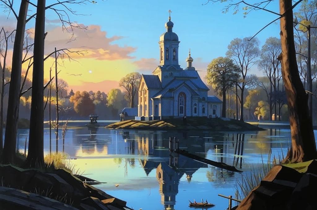 Озеро, изображенное как «глубокое», может символизировать глубину чувств, а «крепкий нерукотворный храм» ‒ устойчивость и святость любви.