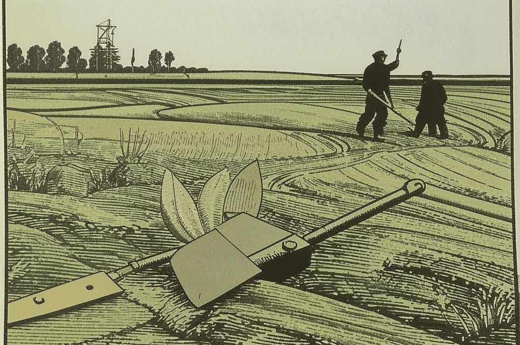 - Лопата и кирка: Символы труда и защищенности, что подчеркивает важность физического труда для защиты земли.