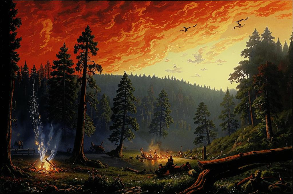 Природа играет важную роль в стихотворении, создавая контраст между красотой и ужасами войны. Запах можжевельника и пейзаж лесов становятся символами утешения, но вскоре переходит в зной и горечь, подчеркивая разлад в жизни людей.