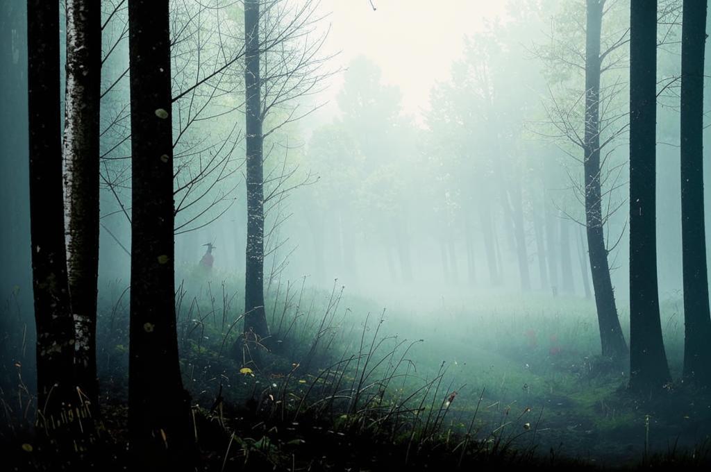 - Метафоры: Использование метафор ("мглистый лес", "слепая смерть") для создания образов и символики.