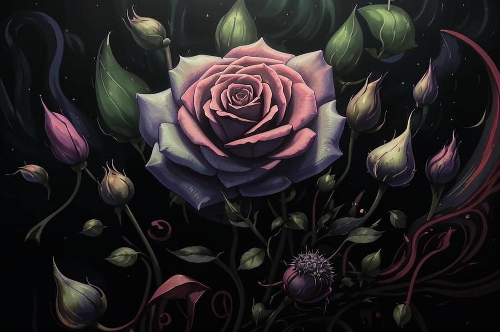 - Антитеза: противопоставление цветка и «черноты» указывает на контраст между красотой и смертью.