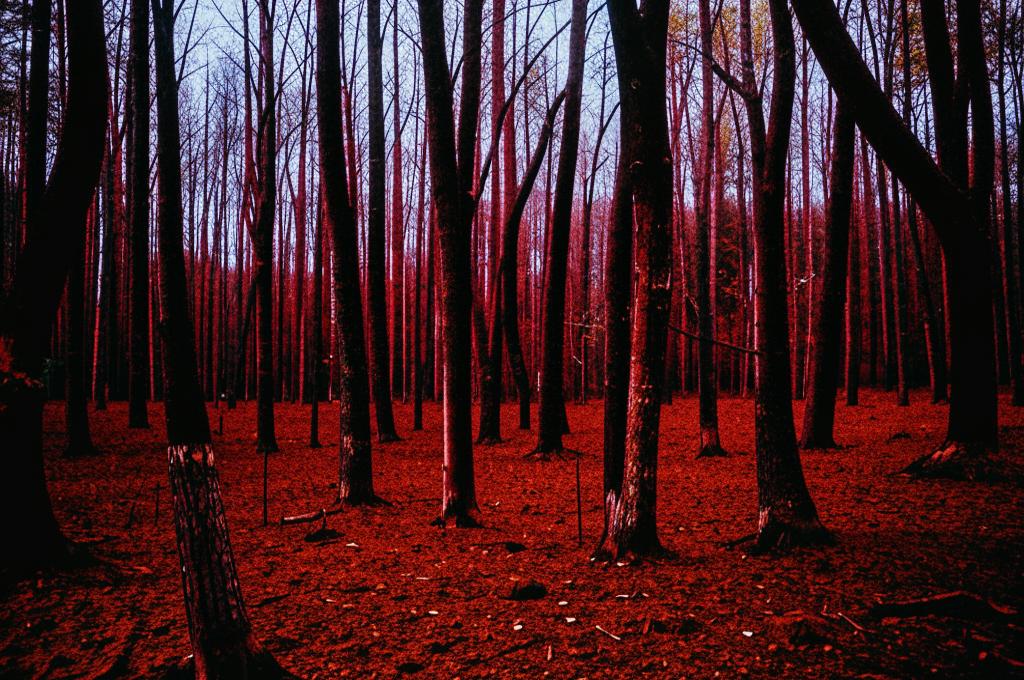 - Природа: Сосновый лес символизирует естественную красоту и гармонию. Красные стволы могут ассоциироваться с теплотой, страстью и жизненной энергией.