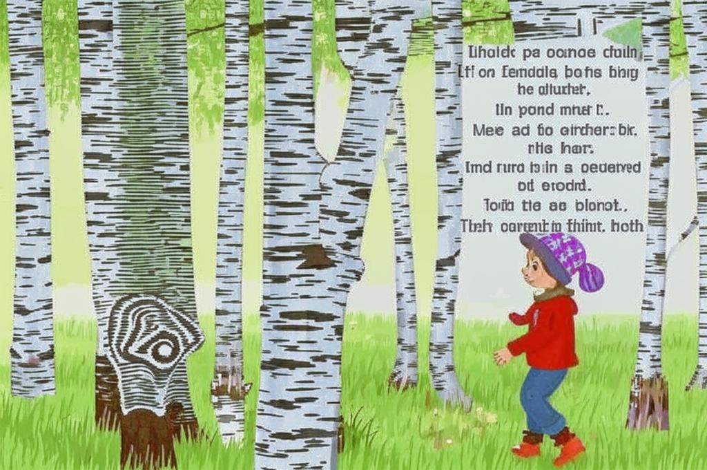 - Трансформация: Появление девушки вводит элемент жизни и радости, которая контрастирует с мертвой березой.