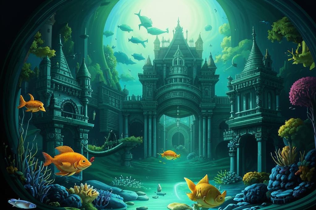 Природа играет ключевую роль в стихотворении. Образы рыб, проплывающих в «залах призрачных палат», создают атмосферу мистического мира. Рыбы становятся символами тех, кто сохранил память о Атлантиде, но при этом остаются в своем подводном царстве.