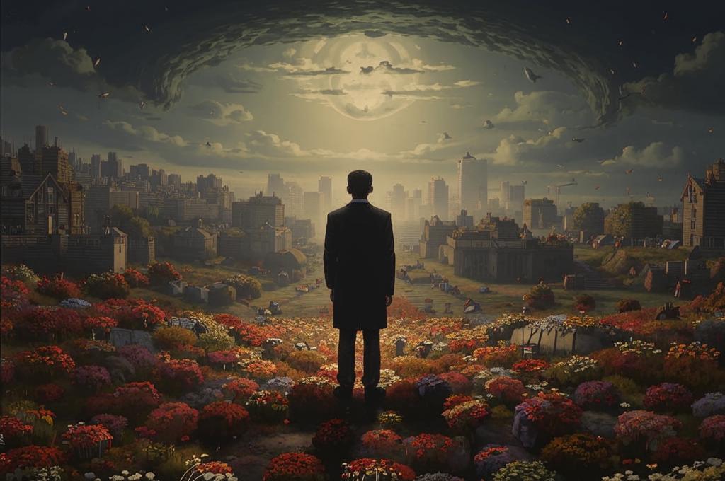 Описание "сонмы мертвецов" противоречит красоте окружающего мира. Глядя на землю, полную цветов, герой видит лишь тени и смерть, что подчеркивает его глубокое разочарование и утрату надежды.
