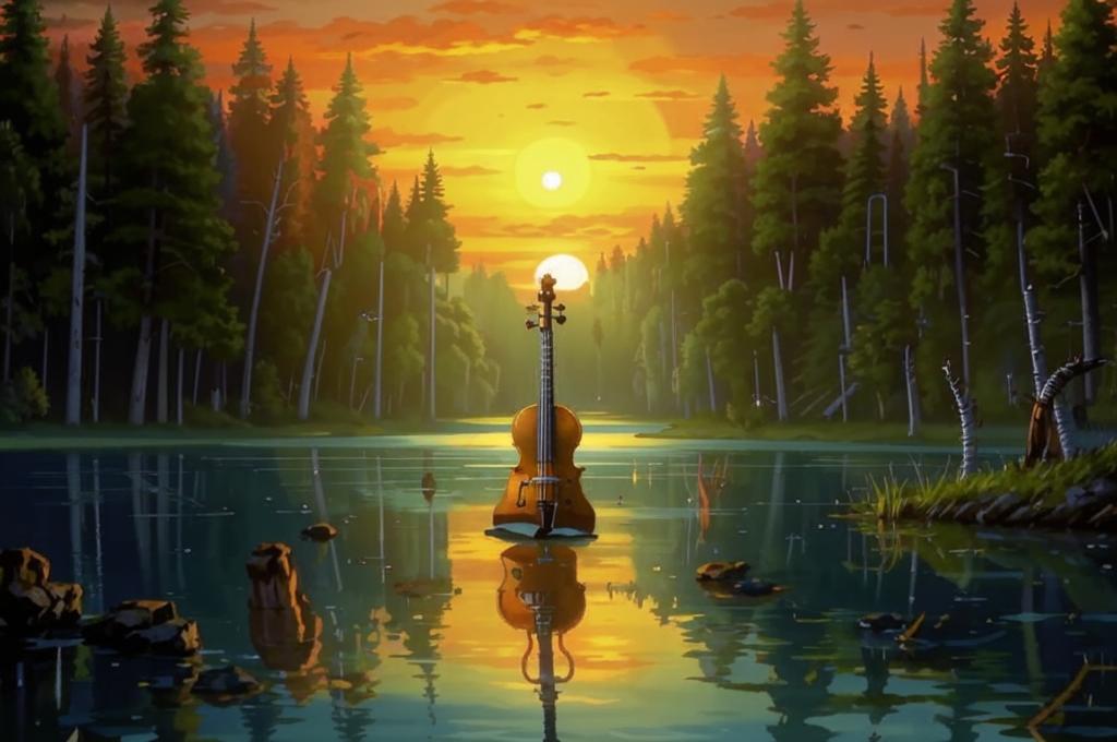 - Сравнение с «немым пеньем скрипки» вводит музыкальные мотивы, создавая ассоциации с гармонией и красотой.