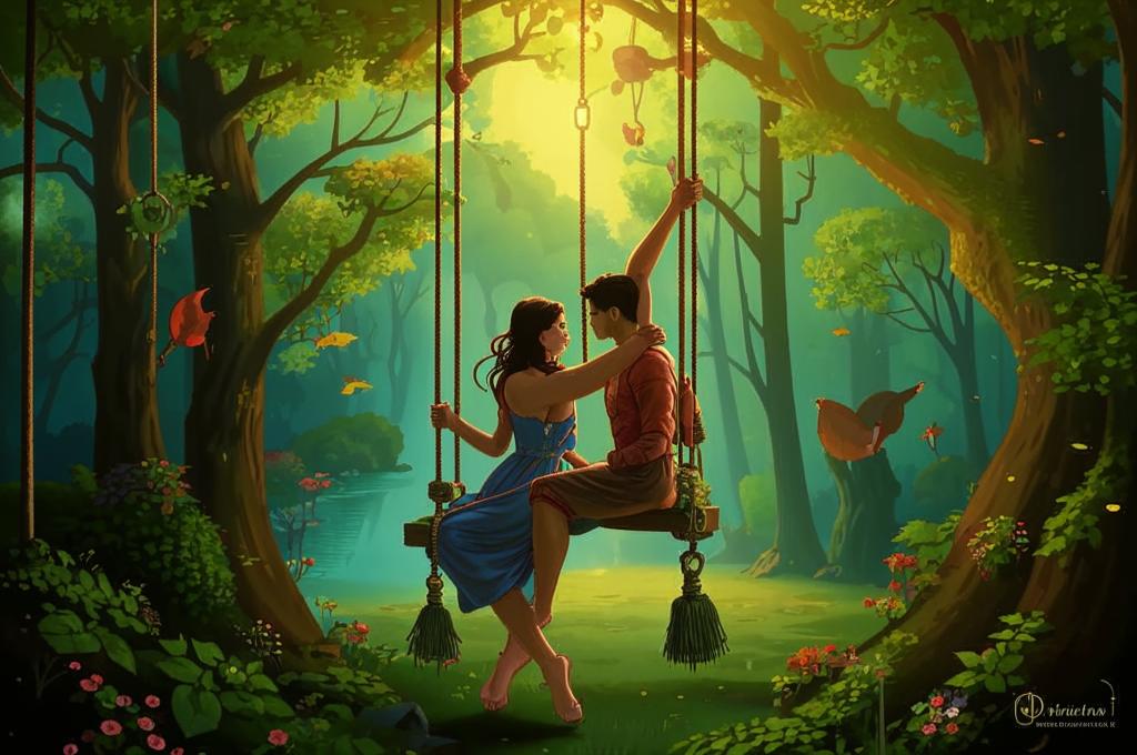 - Качели: Символизируют игру и колебания между счастьем и страхом, между реальностью и мечтой.