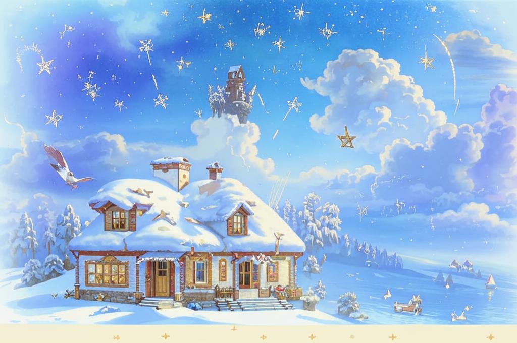 - Снег, как символ чистоты и спокойствия, подчеркивает чувство уединения и тепла.