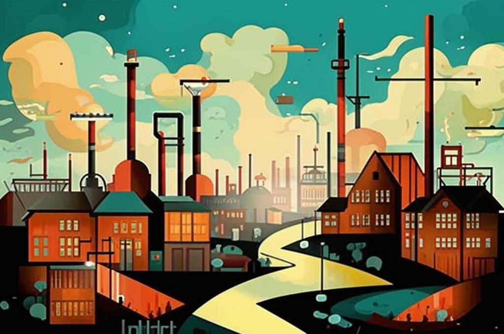 - Деревня символизирует устойчивые ценности и природную гармонию, которые заменяются фабриками и индустриальным прогрессом.