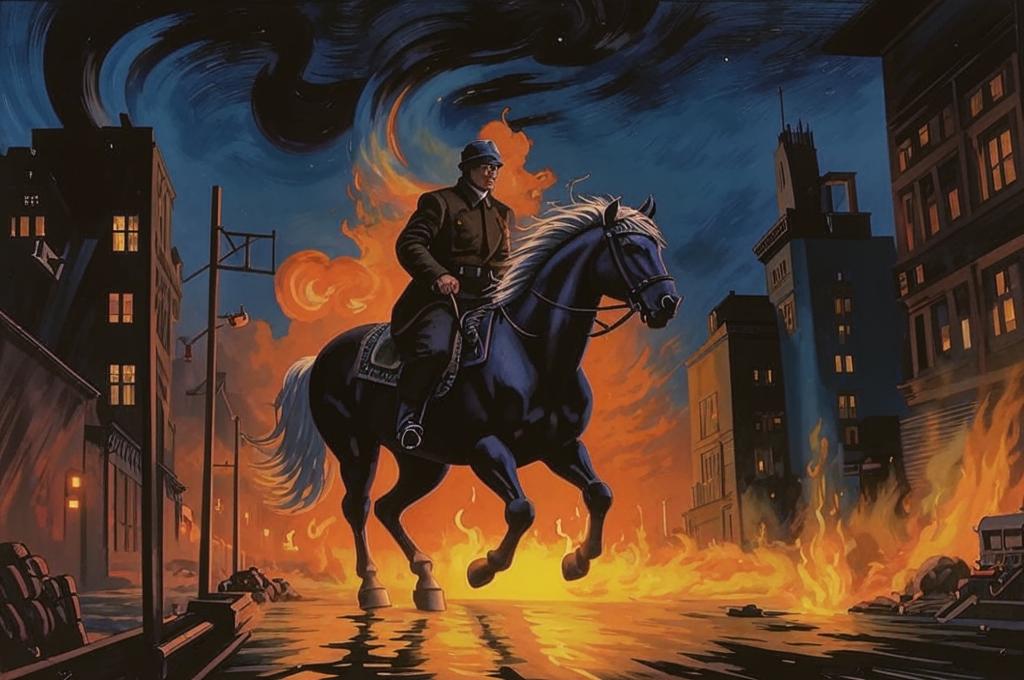 Он скакал на пламенной лошади,