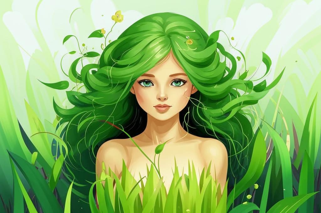 Автор использует образы растений и природы как символы нежности, жизни и единения. Например, «волосы с зелеными листьями» символизируют не только физическую красоту, но и внутреннюю гармонию и связь с природным миром.