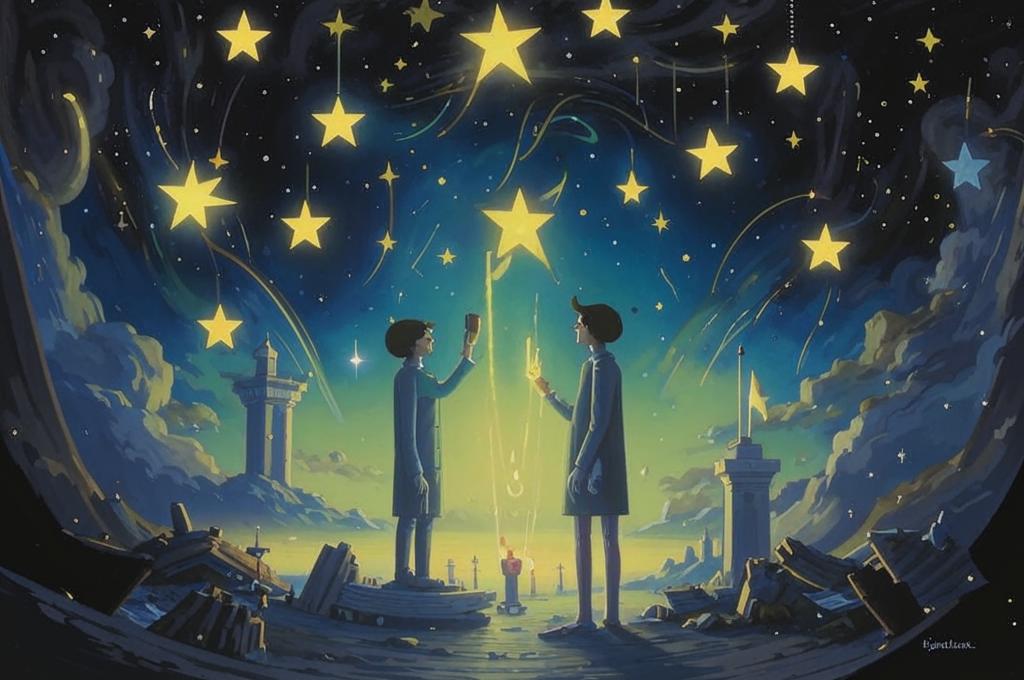 - Звезды: «Звезд насмешливое мерцание» может символизировать космическую иронию и непостоянство истин.
