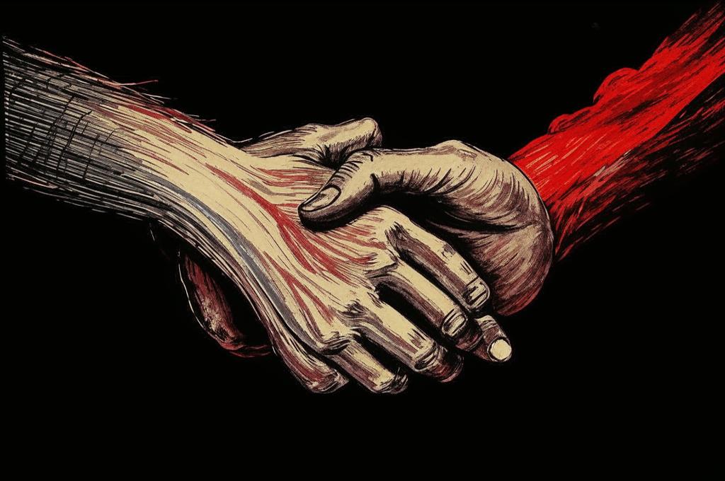 - На протяжении всего стихотворения чувствуется темная сила, с которой герой вынужден столкнуться. Процесс «пожатия руки» представляет собой знак заключения сделки с дьяволом.