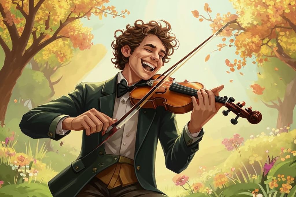 - Первая строка: «Играющий на скрипке» создает визуальный и аудиальный образ, погружая читателя в атмосферу музыки. Игра на скрипке ассоциируется с эмоциями и переживаниями.