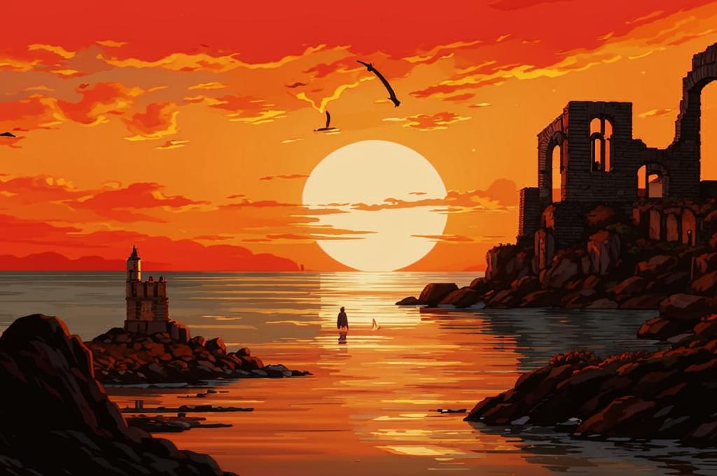 - Природа: образы дня и ночи, воды и луны создают атмосферу меланхолии и спокойствия, juxtaposed with the past's glory.