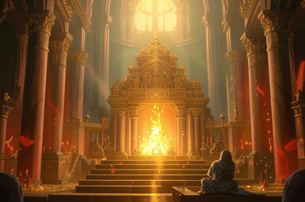 - Образ храма и алтаря символизирует место, где происходит священнодействие, что указывает на внутренний духовный путь автора.