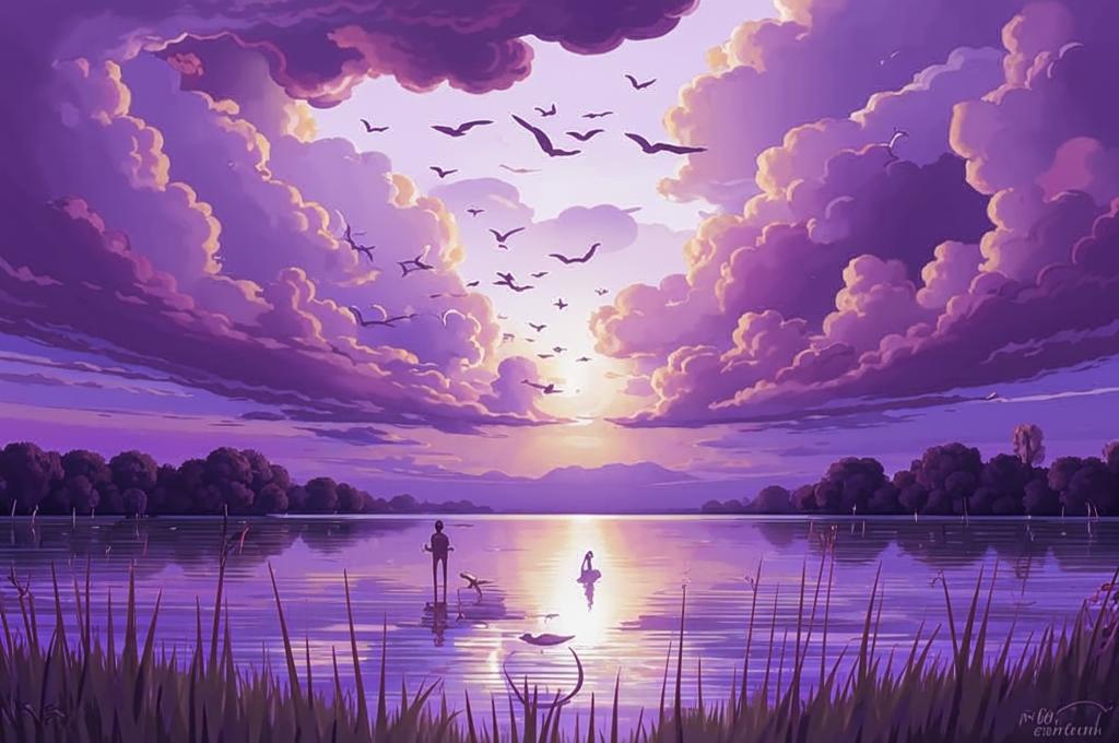 - Пурпурные цвета в начале повествуют о красивом, но одноименно тоскливом моменте — заходе солнца и окончании дня.