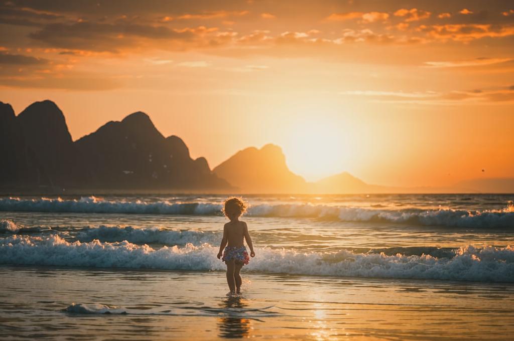 Стихотворение сосредоточено на изображении моря, которое представлено как живое существо — «Море-дитя». Это олицетворение создает образ наивности и невинности, а также подчеркивает связь человека с природой.