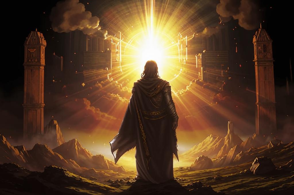 Упоминание о священной книге символизирует знания, откровения и директивы, которые влияют на жизнь героя. Книга раскрыта — это знак открытых возможностей, но также и необходимость следовать её заповедям.