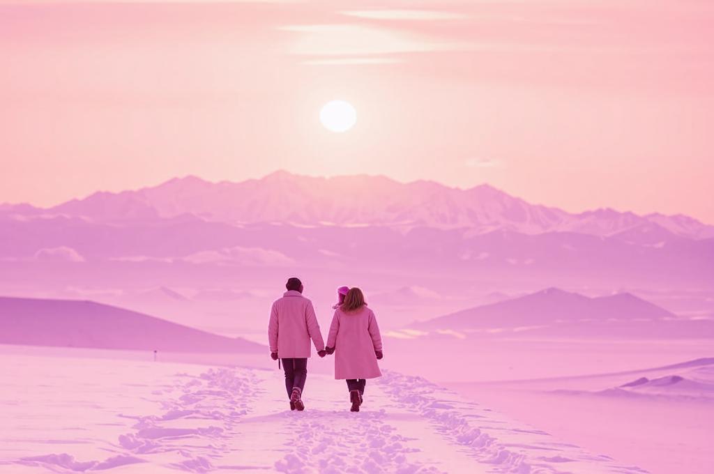 Цвета, использованные в стихотворении, играют важную роль в создании эмоционального фона. Розовый туман символизирует нежность и покой, а белый цвет снежных вершин — чистоту и невинность.