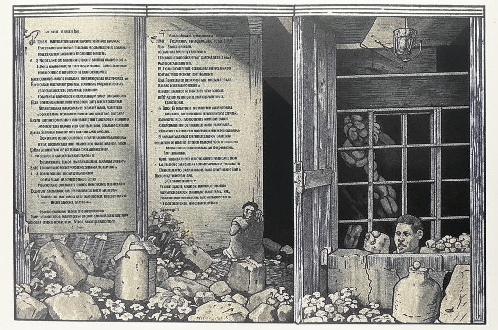 - Чувства паранойи и безысходности представляются через описания мыслей и эмоций заключенных.