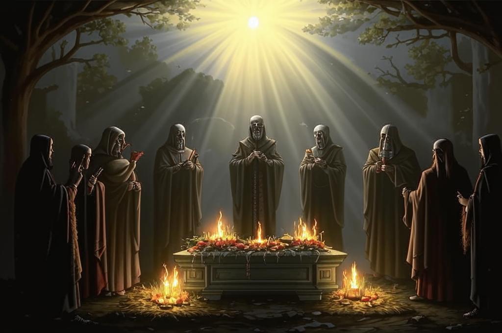 - 2-я часть: Контраст с прошлым, когда смерть воспринималась иначе, с празднованием и радостью.