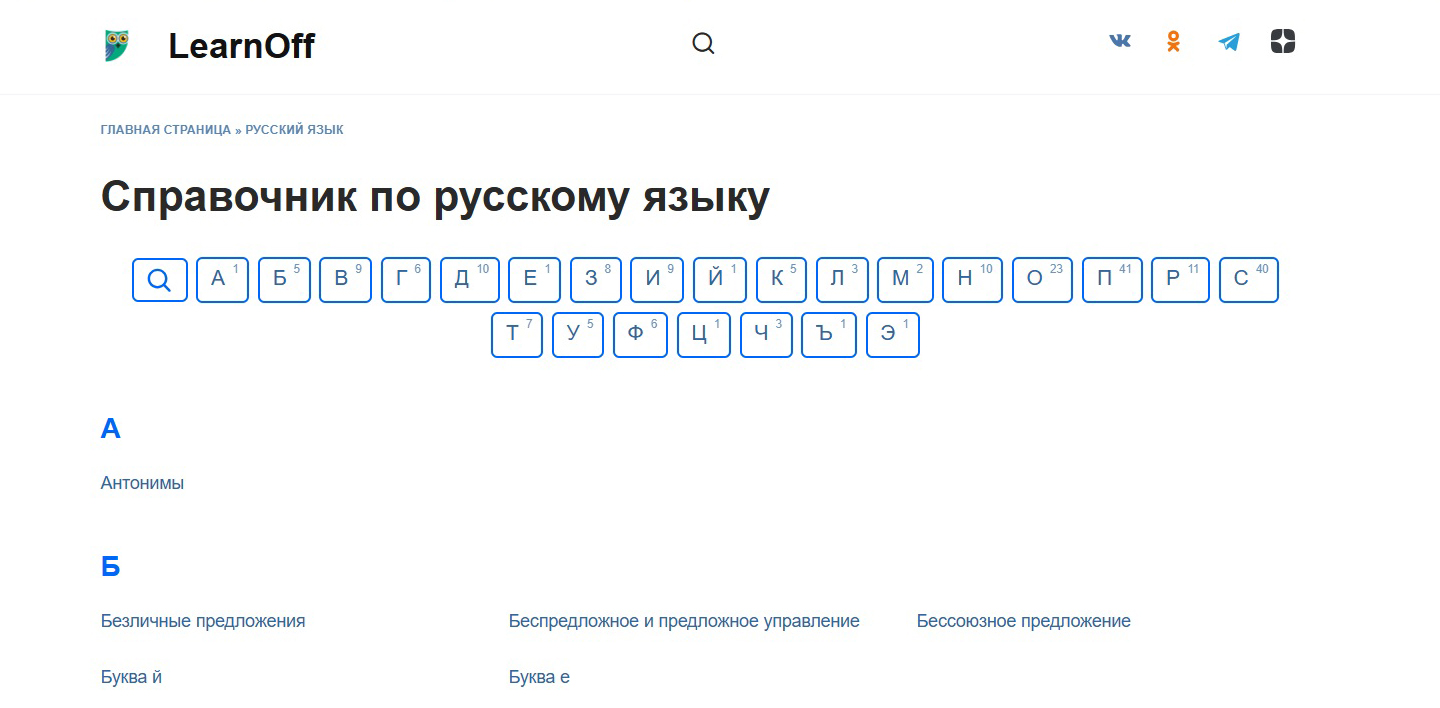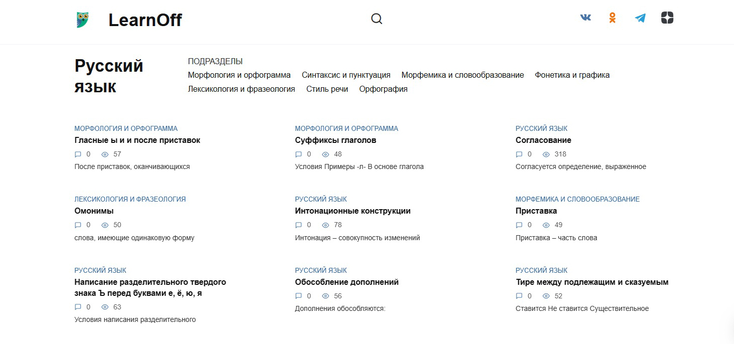 На нашем сайте LearnOff.com сбалансированный подход к оформлению. В то время как многие образовательные порталы напоминают новогоднюю елку, увешанную яркими баннерами и призывами «подтянуть русский за три дня и стать экспертом по литературе за неделю», у нас царит атмосфера спокойной уверенности. Минималистичный дизайн не отвлекает от нашего главного козыря – контента, а интуитивно понятная навигация позволяет быстро найти нужный материал.
