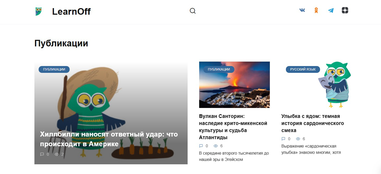 Мы сделали особый акцент на подходе к подаче материала. Современный образовательный контент либо впадает в академичность, либо бесконечно заигрывает с юной аудиторией. Однако нам, как создателям сайта LearnOff.com, удалось найти золотую середину. Наши статьи написаны с той степенью легкости, которая помогает быстро разобраться, например, в особенностях употребления деепричастных оборотов или истории происхождения фразеологизмов. Или же в некоторых хитросплетениях актуальной повестки — с точки зрения лингвистики, литературы и культуры. конечно.